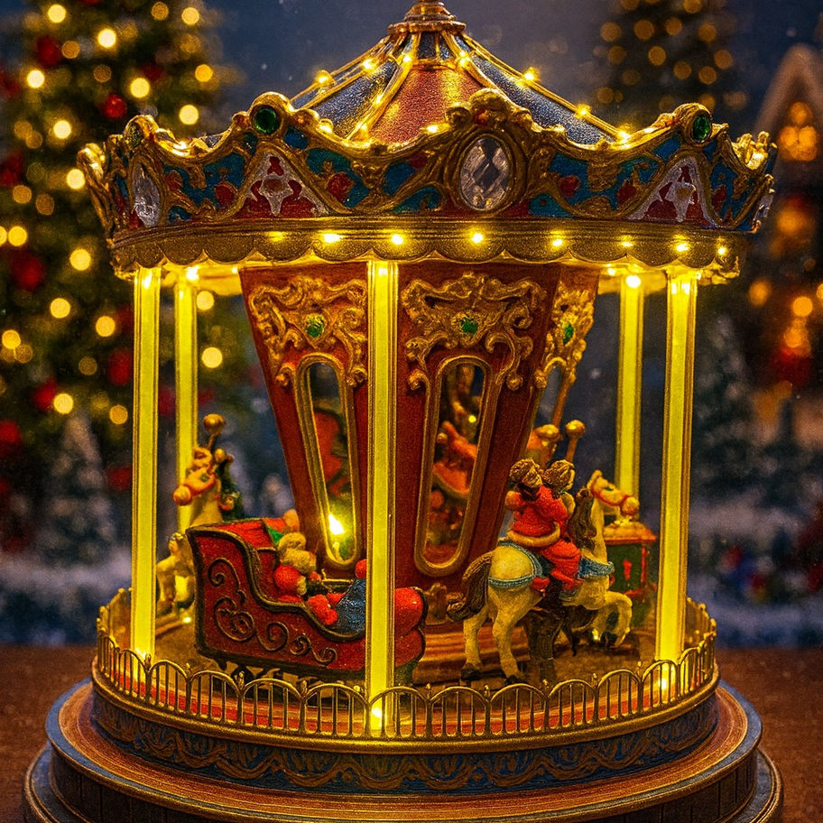 Деталізований дизайн із яскравими фарбами та різдвяними акцентами робить цю карусель ідеальним вибором для декору чи подарунка на свята!